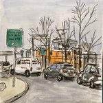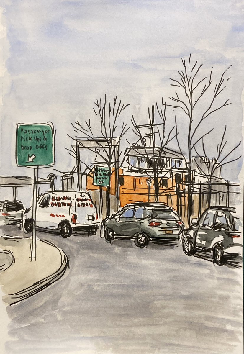 Another view of the passenger pick up at the Staten Island Ferry. #art #ink #watercolor #ferry #statenislandferry #statenisland #waiting