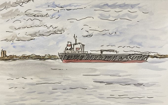 View of Bayonne from the 7:15am Staten Island ferry today. #art #ink #watercolor #statenislandferry #nyharbor