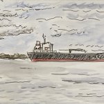 The 7am Staten Island ferry as it left St. George this morning. #art #ink #watercolor #statenislandferry #nyharbor #statenisland