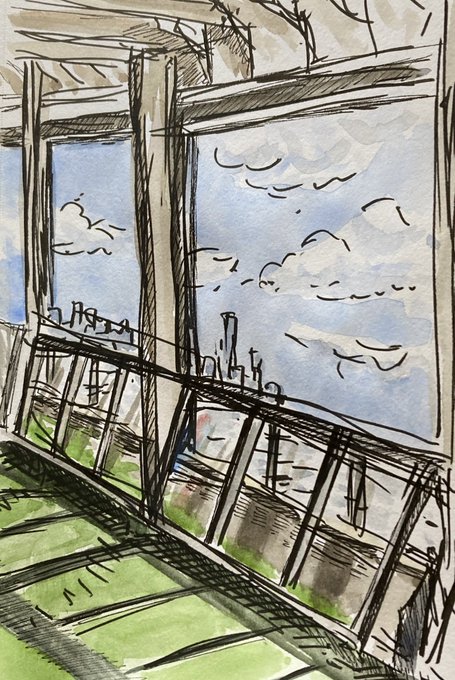 Yesterday morning on the 7:20 am Staten Island Ferry. #art #ink #watercolor #nyharbor #statenisland #verrazzanobridge #statenislandferry