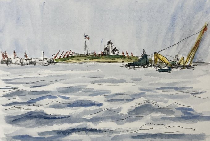 Foggy NY Harbor from the Staten Island Ferry on Thursday and Tuesday morning. #art #ink #watercolor #nyharbor #statenisland #statenislandferry #statenisland #fog