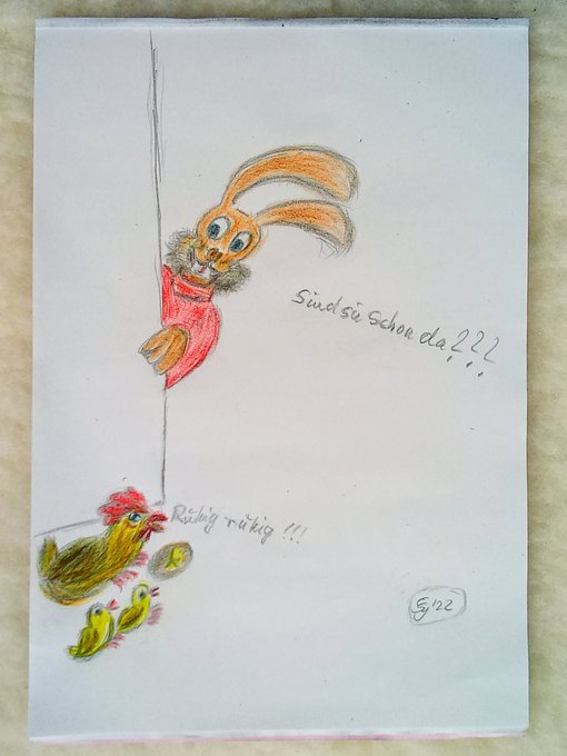 Moin Ihr Lieben 🖌️🌻🌈❣️ @kunstklasse #kleineKunstklasse #illustrationart #artagainstwar #makeartnotwar #StayWithUkraine #schoenesgegendoofes #ArtistOnTwitter #artistsontwitter Was ist denn da los? Warum verstecken sich die Hühnchen? Einen schön sonnigen Tag gewünscht!!! !B