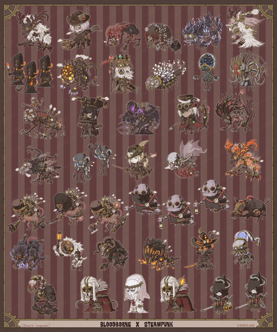 【 #bloodborne × #SteamPunk 】 今年のインクトーバーで描いたブラボボスキャラスチームパンクアレンジ 31日分まとめました🎃 日毎の投稿は→ #bornetober2022 ここからみれます #もにゃ絵
