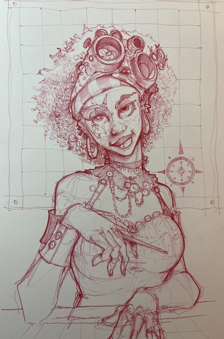 Day 3 of my own Steampunk prompts. Perilla the inventor likes to overthink things...things like safety goggles! So she created these 😅 #steampunkgoggles #Inktober #inkpenart #steamtober #InkDrawing
