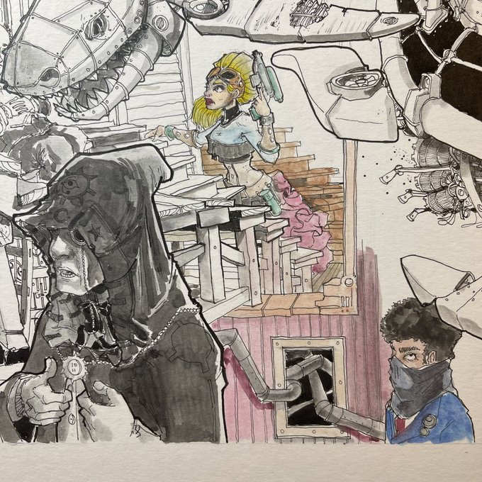 I’m still filling in my #inktober board trying close the gaps in this #steampunk story #inkdrawing #steampunkgoggles #watercolor #illustration