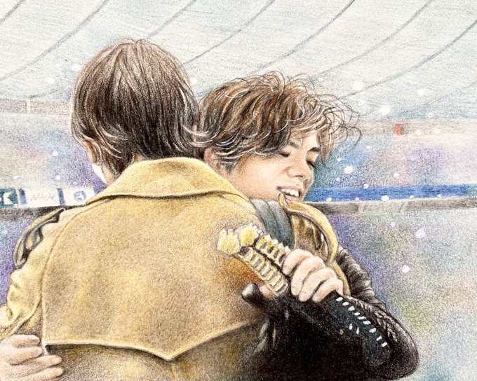 #師弟ハグ祭り 願いはただ一つ💖 どうか北京でもこんな幸せな光景が見られますように🙏✨ #ハグハグエブリバディ #ShomaUno #StephaneLambiel #色鉛筆 #ステッドラー