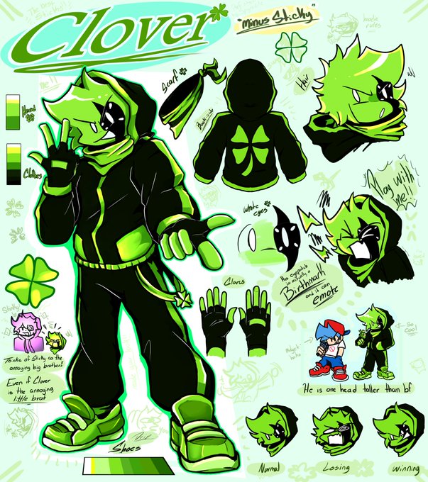 I love this lil boy, I love it soo much, and having the opportunitty on making a reference sheet of Clover// Minus Sticky makes me so happy 💚 I hope y'all have fun to draw him! Sticky's personal favorite boi 🍀 #StickyBMfanart
