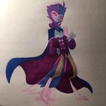 Good morning guys! Today I bring you a drawing of our owl prince. His oufit is inspired by the beautiful cosplay made by cosmic.blood.prince on instagram. Go follow him! He is incredible with the makeup and his cosplay of stolas fascinated me☺ #HelluvaBoss #Stolas #stolasfanart
