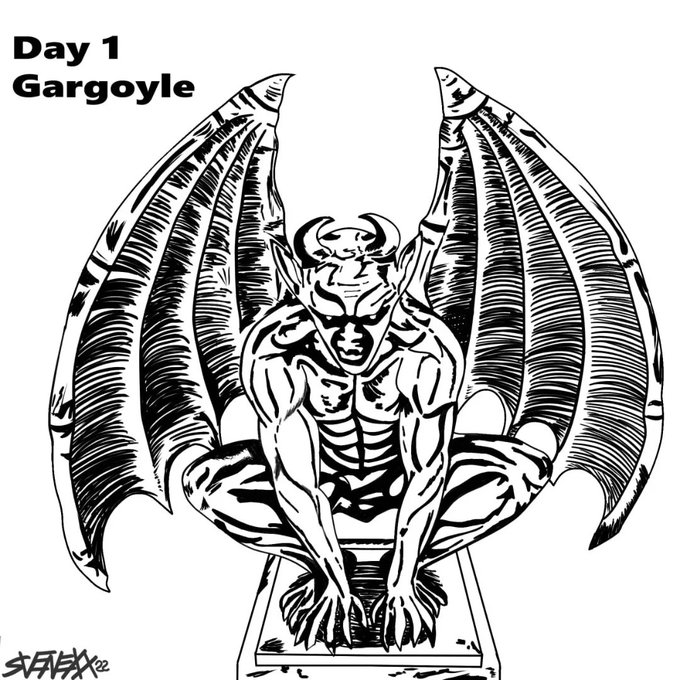(Late) Inktober Day 1: Gargoyle #inktober #gargoyle #stone #statue #monster #halloween #cracked #inktober2022