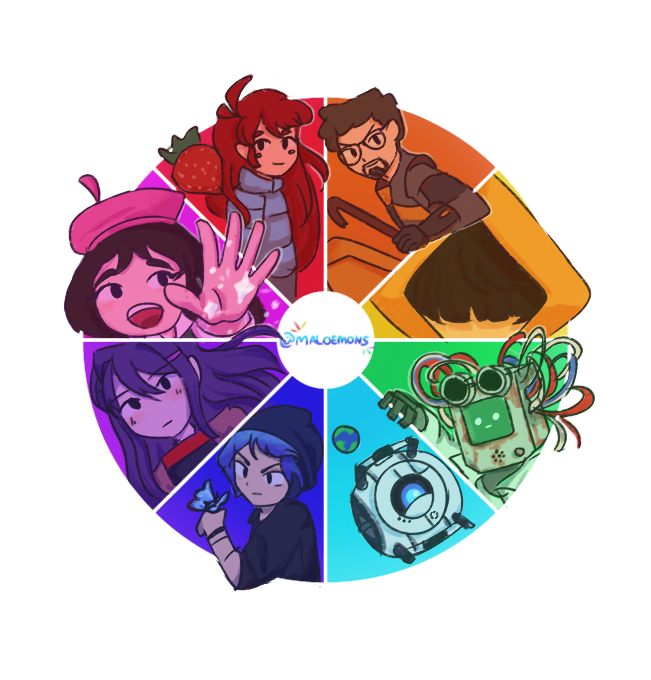 game characters in a bagel #celeste #halflife #littlenightmares #stray #portal2 #lifeisstrange #ddlc #littlemisfortune #fanart