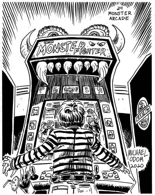 Ghosts of #Drawlloween #Inktober past. 2020's Monster Arcade. #halloween #halloween2022 #arcade #fightinggame #streetfighter #streetfighter2