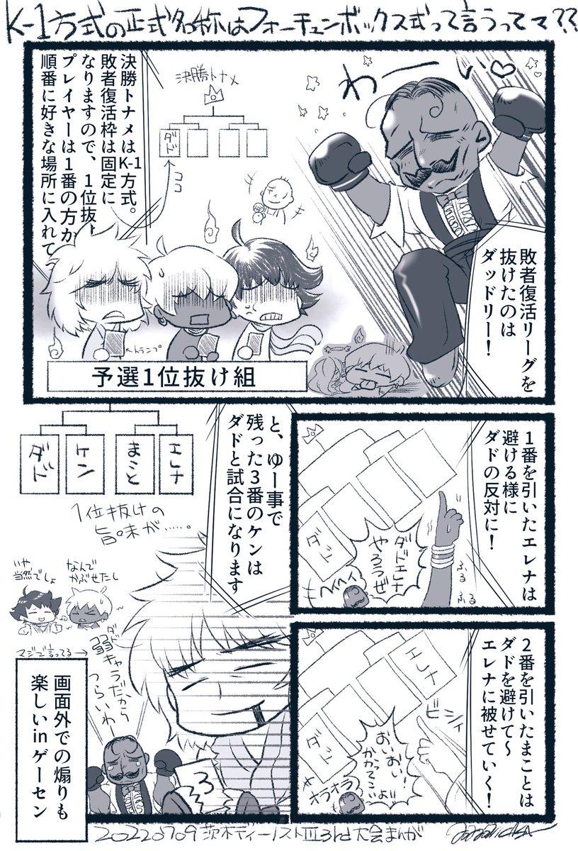 おもくそ身内ネタですが、先日のストⅢ3rd大会漫画(一部創作あり やー、K-1方式のトナメは盛り上がりますなー 優勝常連の関西の至宝様がめちゃくちゃ煽りよる…それがまた楽しいんですけど🤣 茨木ディーノさん、毎月大会開催ありがとうございます #格ゲーキャラ描こうぜ #streetfighter3rdstrike