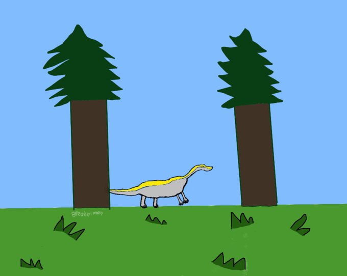 A drawing of a (not accurate) Struthiomimus. After I drew this I remembered grass didn’t exist with dinosaurs. Oh well. #dinosaurs #struthiomimus #paleoart