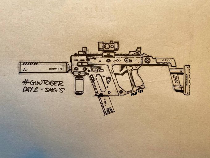 Day 2 - SMG . KRISS Vector CRB _______________________________________ #Inktober #inktober2021 #guntober #guntober2021 #SMG #submachinegun #krissvector #KRISS #art #artwork #draw #drawing #ink #inked #day2 #cool