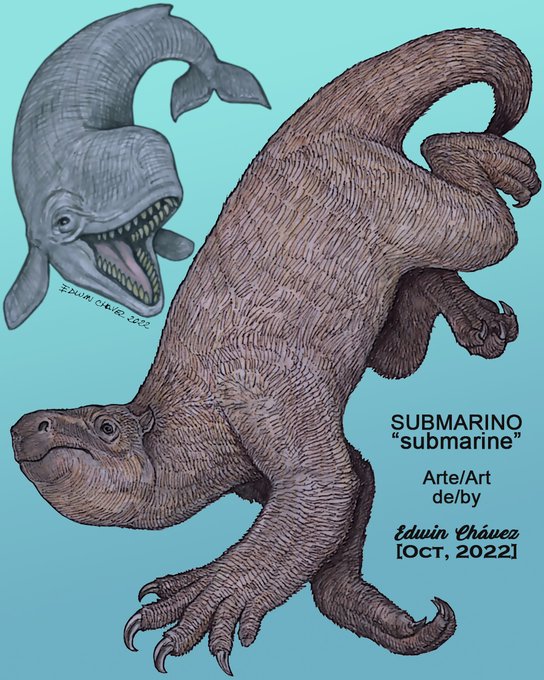 #ILLUSTRAINK, Día/Day N° 1: #SUBMARINO/#submarino #Thalassocnus, the semi-aquatic giant sloth [instagram.com/p/CjN_C06ustz/] [deviantart.com/eoyaguar/art/I…] Palabras clave/Key words: #discord, #drawing, #fiverr, #inktober, #opencommission, #paleoart