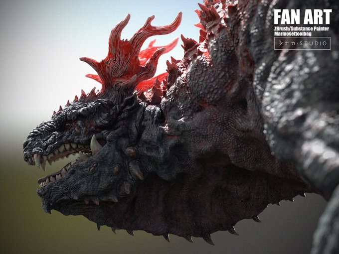 年初めスカルプトにCG上で着色しました。 I painted the first modeling of the year. #zbrush #substancepainter #marmosettoolbag #godzilla #呉爾羅