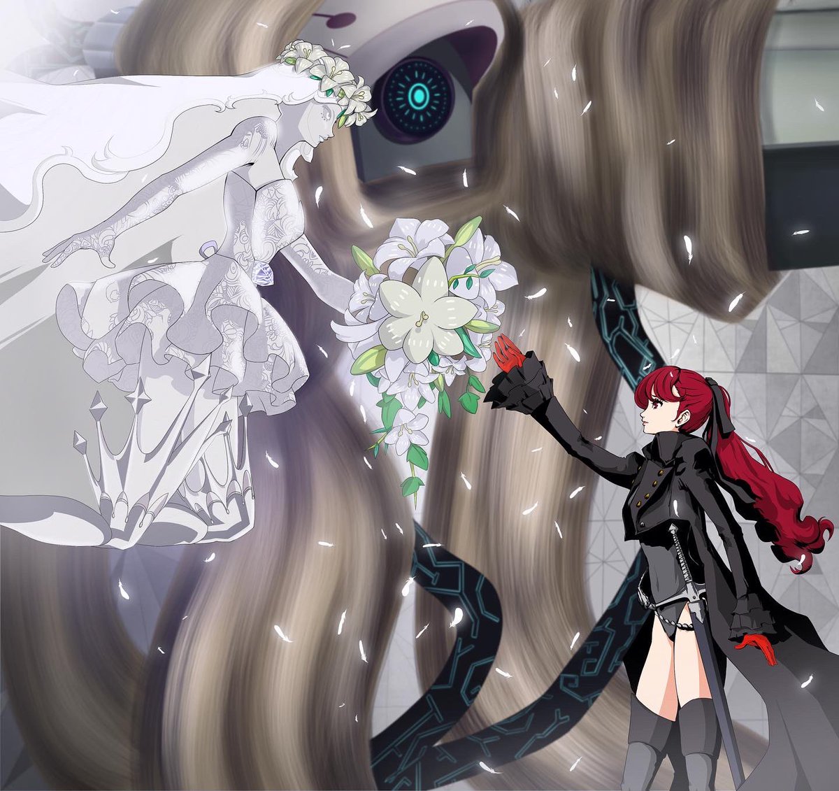 Kasumi & Ella 💐 I looooved drawing Ella & that dress! This commission was done using a reference image I’ll post below #Persona5 #Persona5Strikers #persona5royal #KasumiYoshizawa #sumireyoshizawa #FANART