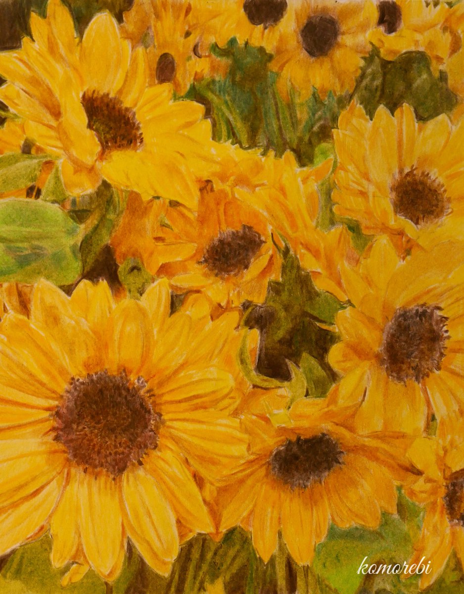 #SunflowersForUkraine 色鉛筆画 Colored pencil drawing Малюнок кольоровим олівцем peace! мир! ウクライナに平和が 戻りますように🌻 パンパステルは使わず 色鉛筆のみ向日葵を。 色鉛筆 ファーバーカステル 紙 ケント紙 #木漏れ日のお絵描き