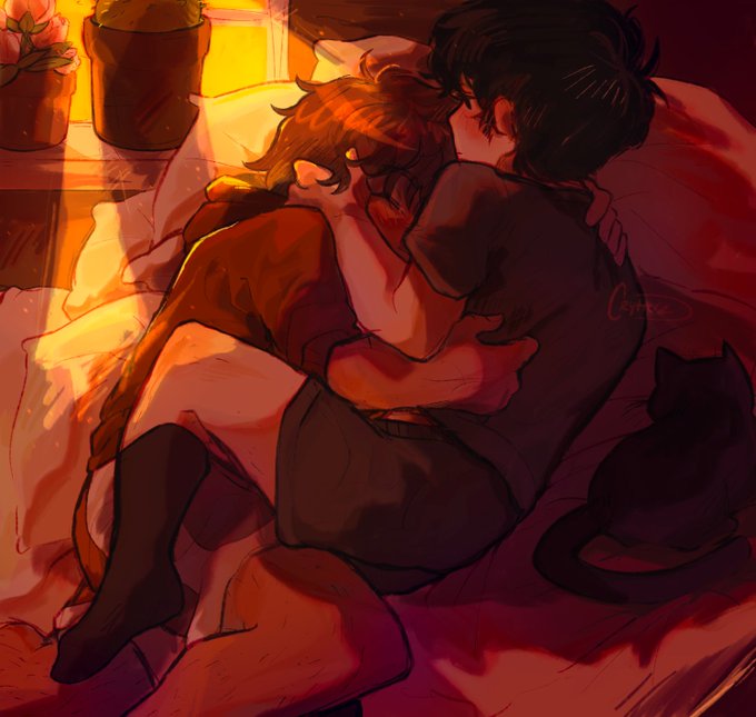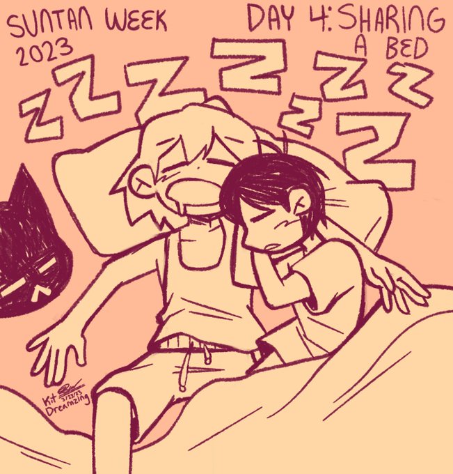 suntan week day 4: sharing a bed 🛏️🧡🖤 this was sm fun to do omg, I love them to death. 🫶 #suntanweek2023 #suntanomori #OMORIFANART