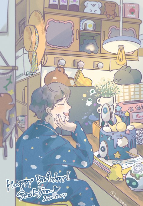 HAPPY BIRTHDAY🐹🎂 私の人生に楽しみや喜びを増やしてくれてるジンさんありがとう大好きです🛸 健康と幸せな時間が多いことをいつも願ってます。 #HappyJINday #HappyBirthdayJin #SuperstarJinDay #btsfanart