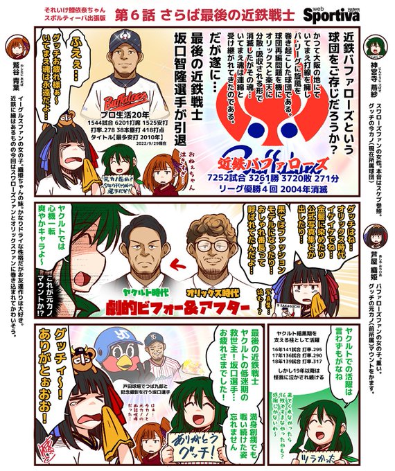 あかぎゆーと先生(@akagiya)の大人気漫画「それいけ鯉依奈ちゃん出張版」の第6回。 今回は最後の近鉄戦士となった #坂口智隆 選手について。 #swallows #それいけ鯉依奈ちゃん出張版 ⚾連載一覧▶️ lnky.jp/bRnRupR