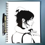 #Inktober Day 16, #Fowl, this woman must be the #Swan whisperer as I've heard swans are not very approachable. 😂 #illustration #drawing #sketch #sketchbook #ink #inkdrawing #penandink