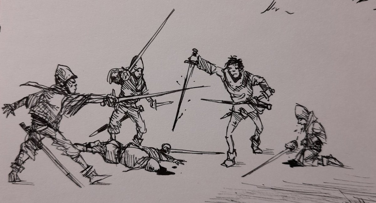 Another little #sketch I did this evening🙂 a little bit of action for a Saturday evening #drawingart #drawing #illustration #art #fantasy #fantasyart #SwordFight #dnd #dndart #ttrpg #adventure #OSR
