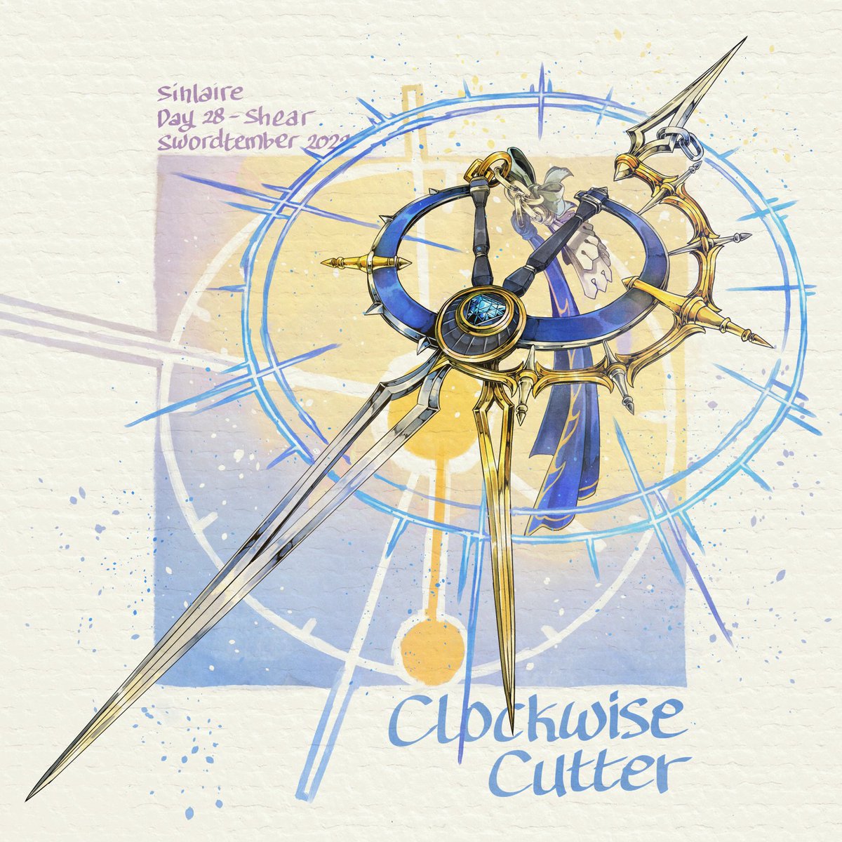#swordtember #swordtember2022 Day 28 - Shear Clockwise Cutter the design is based on Ouro Kronii character design since the clock and time theme match so well, so technically... #kronillust (?) Hi-Res images and Stats are available on my Patreon
