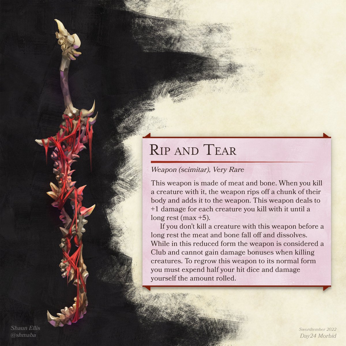 Day 24 - Morbid I suppose this fits with our current season of spooks and horror I didn't want to make it look too gross, but just in case cw: blood bone and macabre #swordtember #swordtember2022 #dnd #dungeonsanddragons