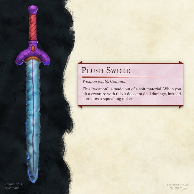 Day 28 - Fuzzy baby's first sword. Complete with squeaker #swordtember #swordtember2022 #dnd #dungeonsanddragons