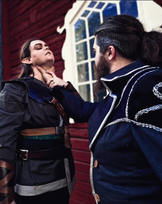 # Enemies to Lovers Like, what can you do when your husband dresses up as Sylas Biriarwood?? Bad guy Biriarwood @teddy_fuzzy Vax'ildan Me Cosplays based on @philbourassa 's LVM design Characters from @CriticalRole #vaxildan #criticalrole #legendsofvoxmachina #sylasbriarwood
