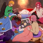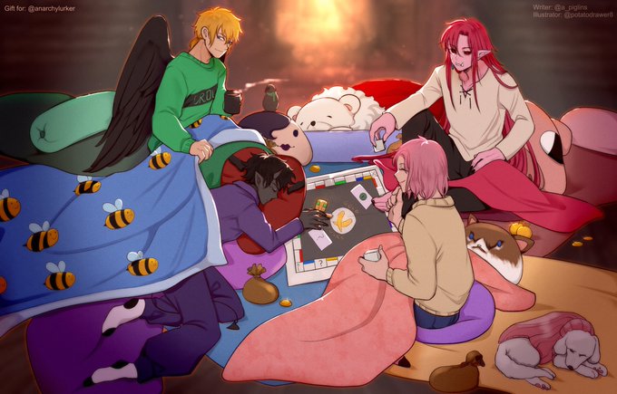 "The Syndicate have a sleepover" Prompt made for @anarchylurker in #RivalHomelessness charity event. Very sorry for the delay but I hope you like it!! 🥰 You can read the fic here: archiveofourown.org/works/38521027 (Please untag in the reply!) #dreamsmpfanart #syndicatefanart