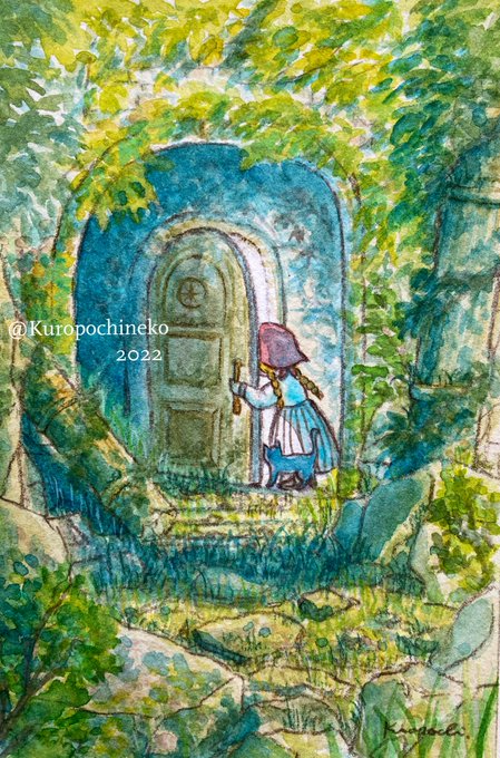 「開けてはいけない何かを開けている人物」がテーマの展示の為に描いたうちの一枚。出品しなかった作品です。 立ち入り禁止のパパの書斎の中にある一番何かありそうな扉を開こうとしています。 只今オンラインで画集や昨年描いた絵本が販売中ですので是非🤗 picaresquejpn.com/tabf2022/ #TABF2022