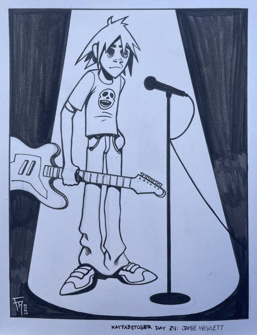 #kayfabetober Day 24: JAMIE HEWLETT • #inktober2022 #Inktober #jamiehewlett #cartoonistkayfabe #gorillaz #tankgirl