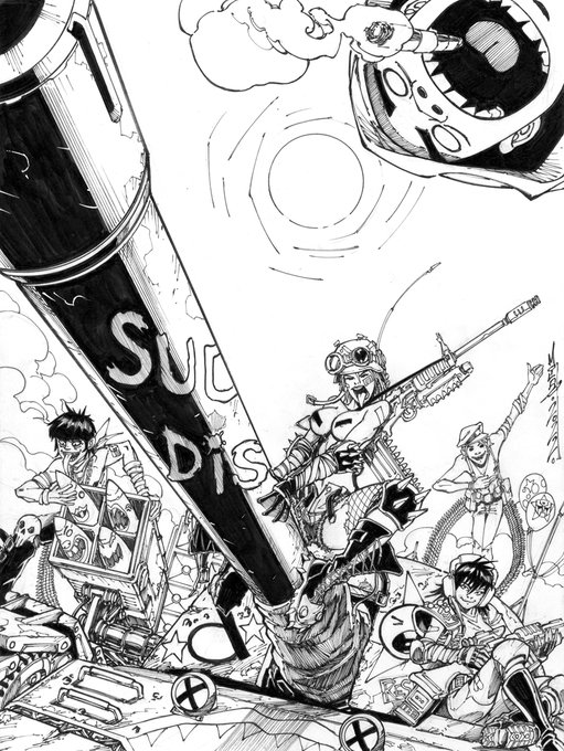 #Kayfabetober drawing 24 Prompt: Jamie Hewlett - Tank Girl + Gorillaz #cartoonistkayfabe @jimruggart @EdPiskor #tankgirl #gorillaz #Gorillazfanart #comics