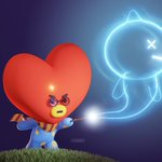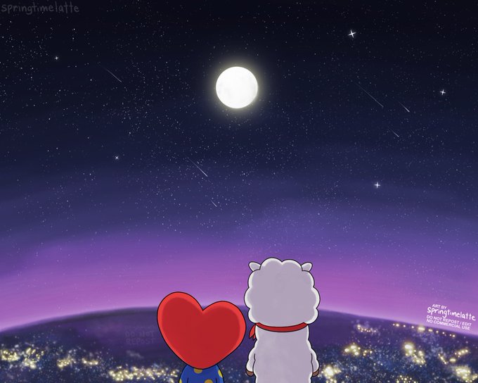ふわふわになてたな♥️✨ ⚠️イラストの保存&使用の際は下にある注意事項お守りください🙇♂️ #連投すみません #Tシャツのデザインたぶん違う #BTS #btsfanart #テテ #ヨンタン #TATA #アニマル描くの苦手
