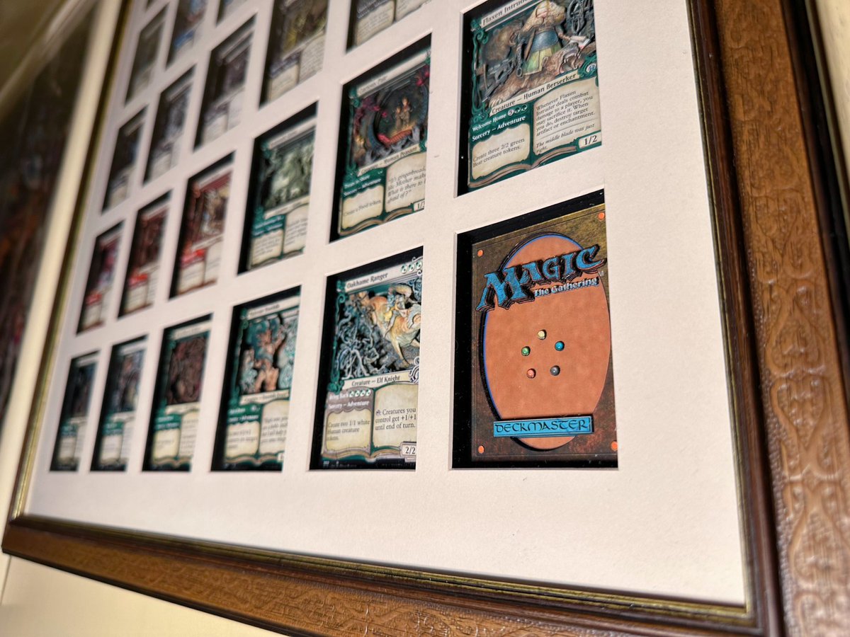 先日ファミリーのぱらぴえろさん(@parapierro999 )が新作のシャドーボックスを持って遊びに来てくださいました! MTGエルドレインの王権のショーケース枠の作品です。 当店で展示させて頂いていますので是非みなさん見に来てください! #TCGbar_Oneand #シャドーボックス #MTG #MagicTheGathering