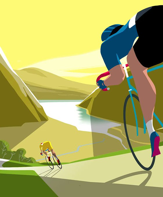 #FunFact: The fastest average speed of a #TourdeFrance was 25.7 miles per hour (mph), set in 2005. In 1919, the average speed was 14.9mph. An excellent #illustration by Michael Meister, represented by @IllustrationZo1. Explore more: buff.ly/3zIDroV #tdf #cycling #velo