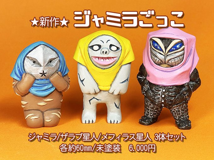 9月10〜11日開催の トレフェスオンライン8 「うらまっく」で参加します ●「ジャミラごっこ」 6.000円 ●「アボバニ★ダンス」 5.500円 ●「やさぐれギャンゴ」 2.500円 レジン製 / 未塗装・未組立 高さ各約60~70mm よろしくお願いします~ #トレフェスオンライン8 #TFO8