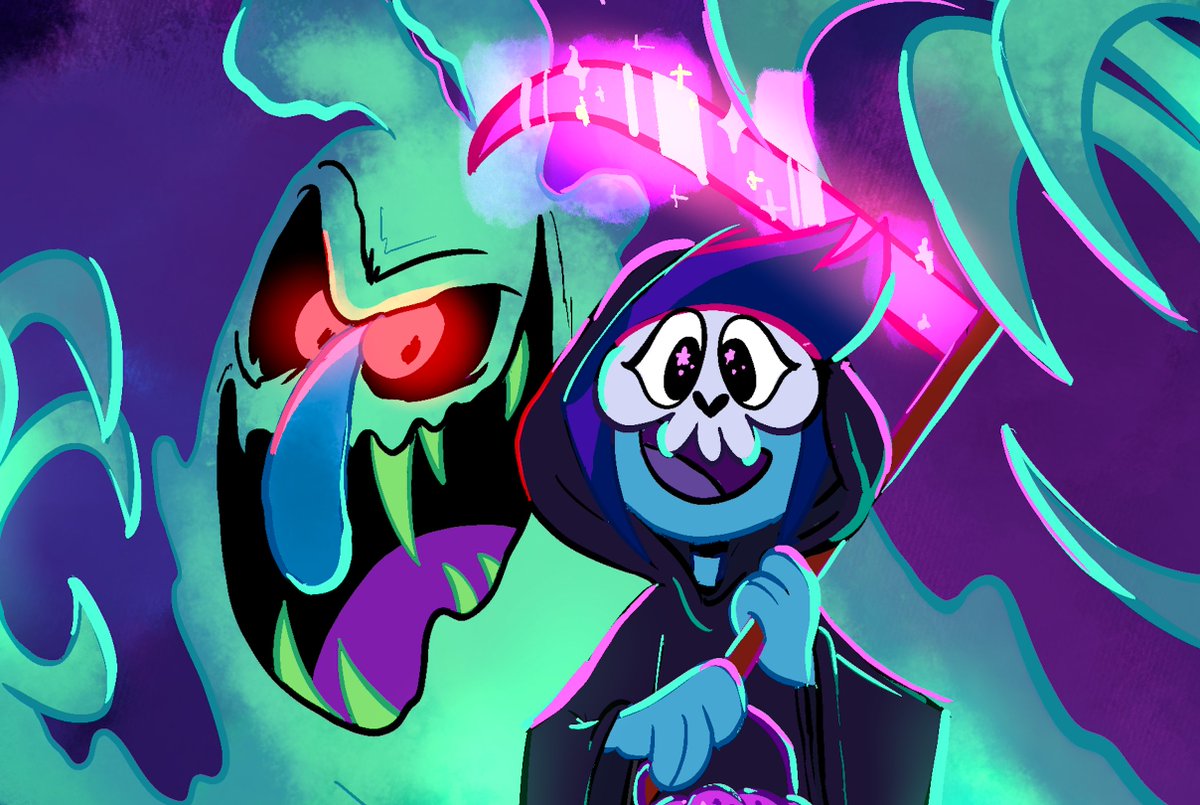 When your best friend is a ghost, going as the Grim Reaper for halloween is a pretty obvious choice (thanks to @Micaela_Manning for the brainstorm!), and scratch is helping add to the costume! #TheGhostandMollyMcGee #tgammfanart #tgamm