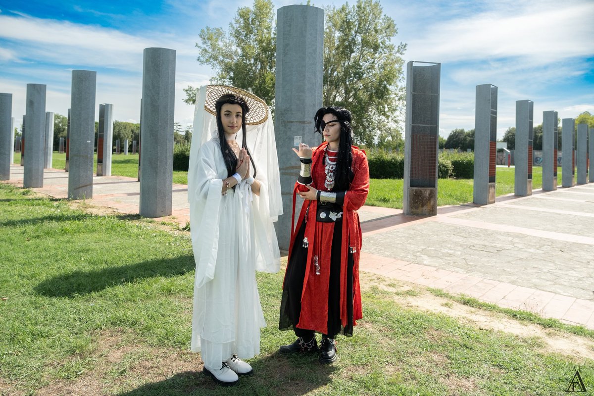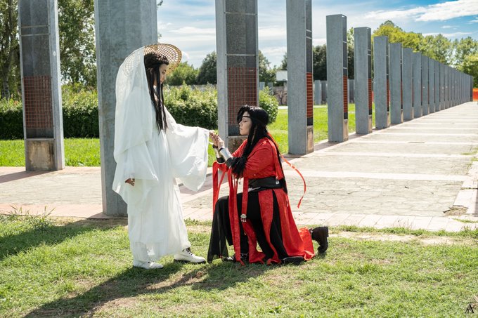 Hualian photoshoot made with my sis @Yukilrlrlcat at #Firenzecomics #HuaCheng #cosplay #hualian #hualiancosplay #tgcf #tianguancifu #HeavenOfficialsBlessing #tgcfcosplay #danmei