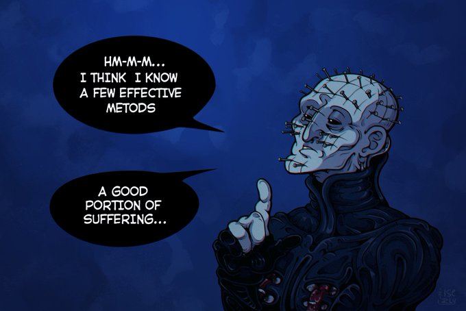 気づいたらサバ彩Iなれてました、よかった! 記念にPIPをパラパラしてくれるピン様描きました #DeadbyDaylight #DbDfanart #DbDアート #TheCenobite #Pinhead