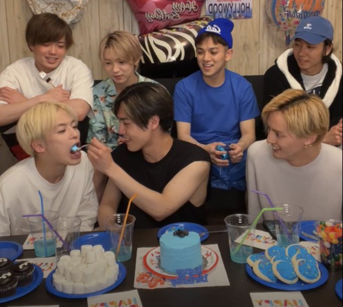 げんげんがうみにアーンしようとしたところで「こういうのは順番があるでしょ!」って言って松倉さんにアーンさせる川島如恵留さん、「Big Love…ビックラブ… ビッ"クラ"ブ…!? エモ!!!」になる中村海人さん……メンバー内に松松厨がいるの最高ですね #TJgramLIVE #Genta23rdBDay