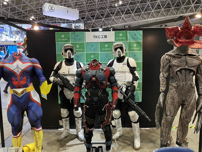 おはようございます。今日こそ打倒スパイダーマン!#東京コミコン2022 に向かいます。 the Glitter Factory (アーティストアレイC039)にいますが、お隣は本格派コスプレイヤーの憩いの場、#TKC工房 さんです。昨日は社長と編集長で記念写真! お声がけください #東京コミコン #東京コミコンコスプレ