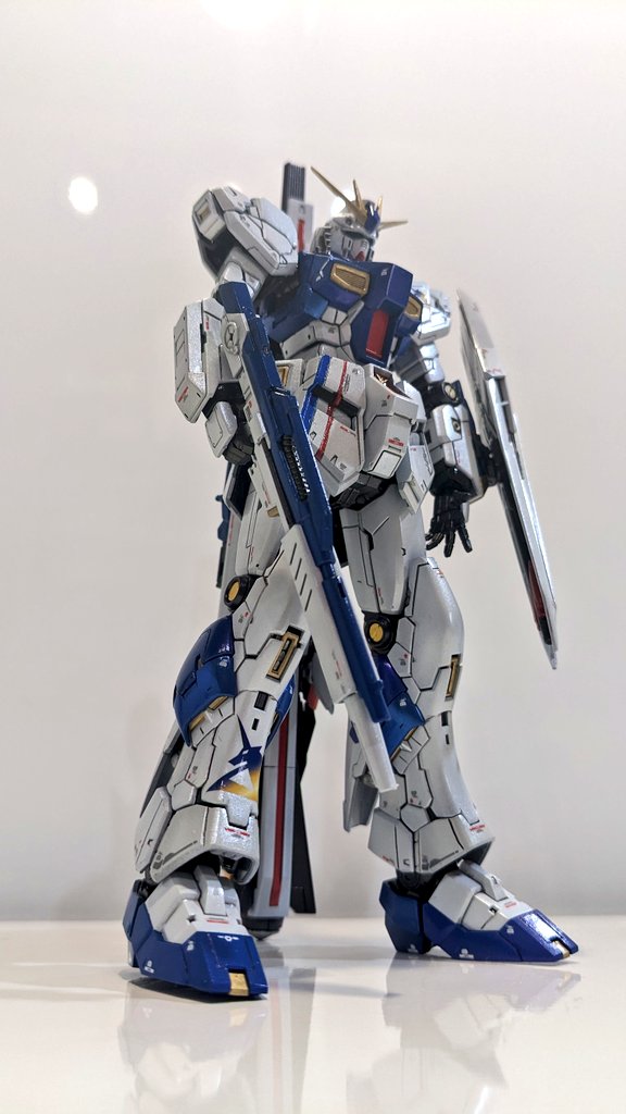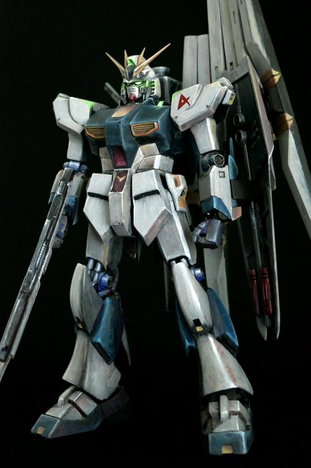 トップコートに艶消しパールを使用し角度や光の当たり方によって質感に変化がでるようにしました! #TLに深刻なνガンダム不足 #ガンプラ好きな人と繋がりたい #ガンプラの画像貼るとRTされると聞いて #νガンダム #ガンプラ
