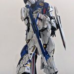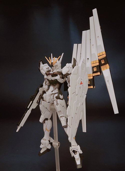 2021年11月HJメカニクス掲載用に製作 最後に作ったνガンダム 外装ギミックの為の情報を排除して情報を再構築、MGの基本プロポーションに設定画のνガンダムとしての各部の特徴(垂れ胸、大きい肩、長い股間、etc)を自分なりに取り込むという、わかりづらいことをしていますw #TLに深刻なνガンダム不足
