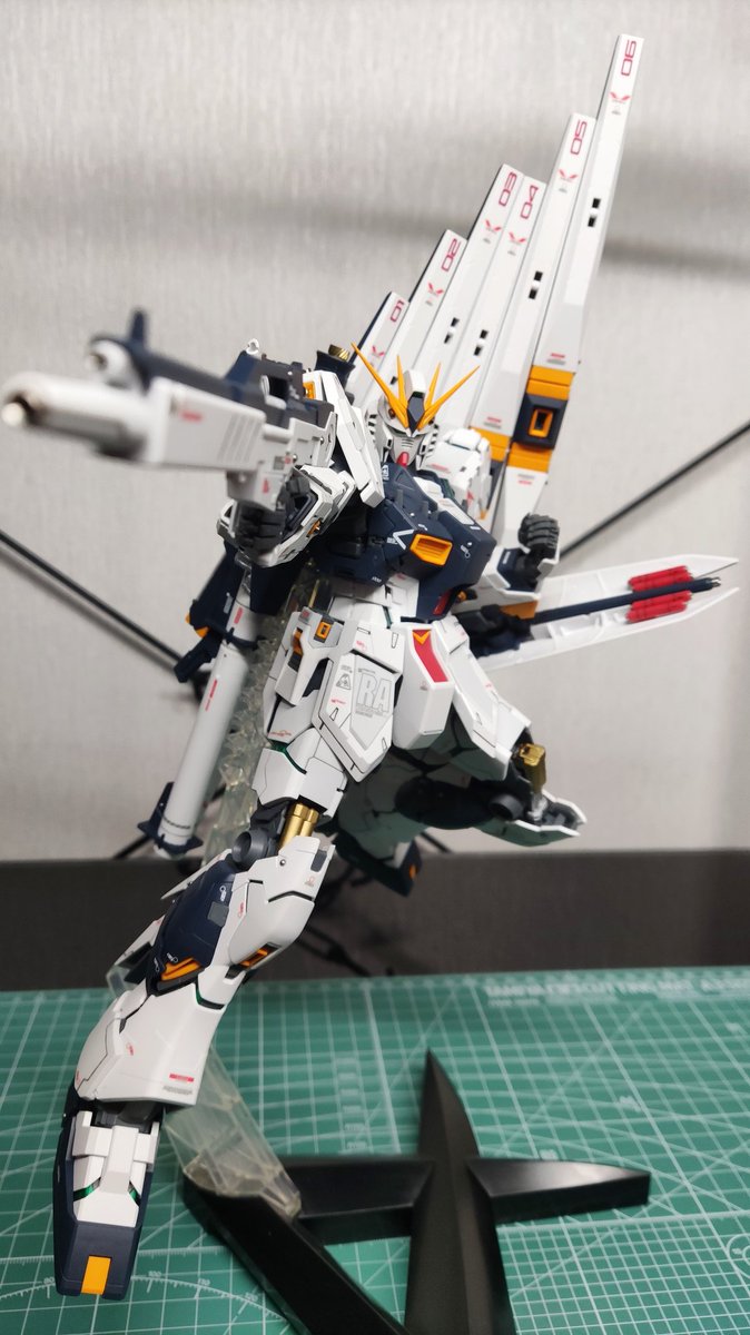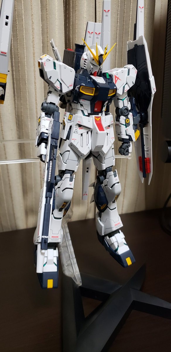 完成しました···MG νガンダム Ver.kaです。休みの日だけしか模活できない人なので、完成まで約半年(2022/9着手)かかりました。 #TLに深刻なνガンダム不足 #νガンダム #ガンプラ #ガンプラの画像を貼るとRTされると聞いて #ガンプラ初心者
