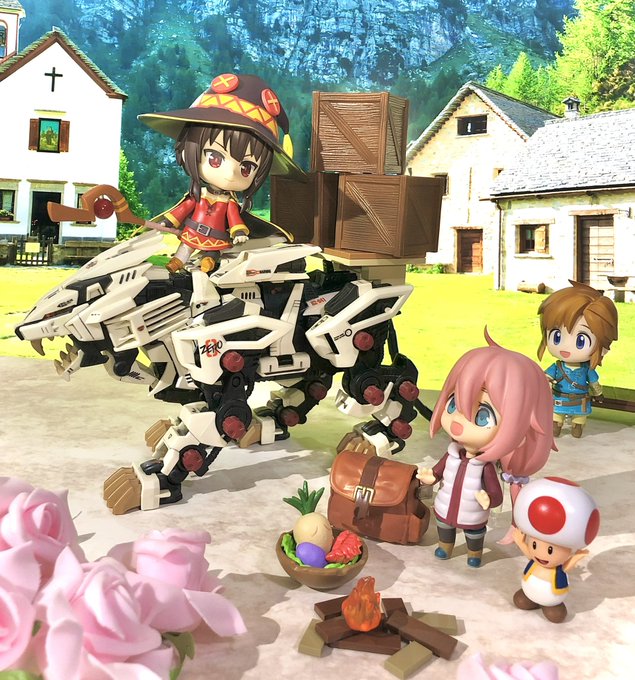 8/30のお題【こんげつのしゃしん】 「『#TLに深刻なねんどろいど不足』って聞いて、物資を届けに来たのですが、大丈夫そうですね。」 「ねんどろ村は、いつだって好景気だよ~♪」 #深夜のねんどろ撮影60分一本勝負