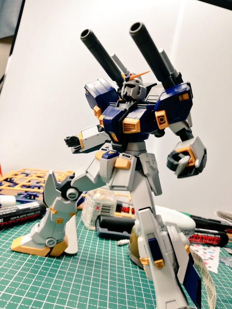 #TLに深刻なキャノン不足 #ガンプラの画像貼るとRTされると聞いて #ガンプラはどんな自由な発想で作ってもいいんだ 過去作ですが、轟雷ベースで作ったガンダム6号機マドロックちゃん改です。一部パーツを無くしたため、代用品で対応しています。