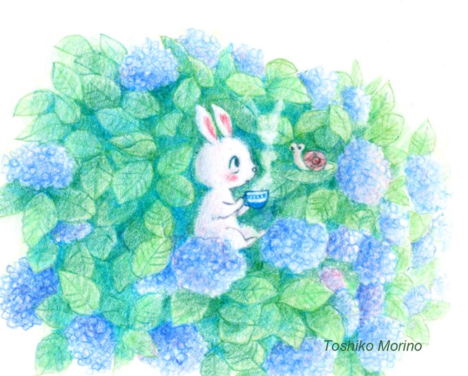 うさぎと紫陽花🌿 絵本風イラストは、 creema、minneで発売中です✨ 【minne】 minne.com/@ryopinoko 【creema】 creema.jp/c/ryo_les_lapi… #イラスト #アナログ絵 #水彩イラスト #ウサギ #うさぎイラスト #TLを紫陽花でいっぱいにしよう